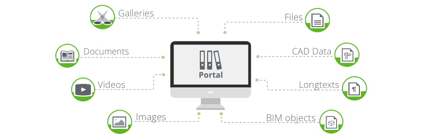Each catalog, video and all the item-specific images, long texts and file attachments must first find their way into an OXOMI portal before they can be used from there - either directly in the portal or via the interface.